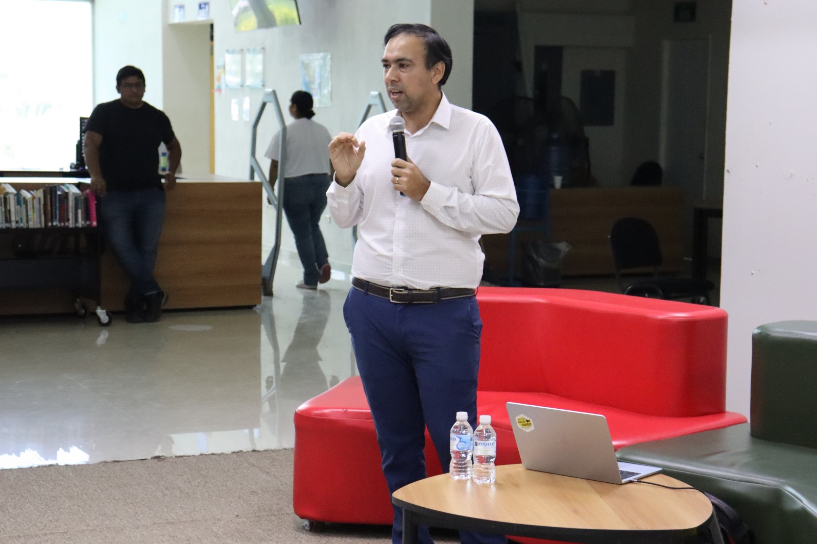 Escuinapa.- En la biblioteca de la Universidad Tecnológica de Escuinapa se llevó a cabo la conferencia del científico escuinapense Dr. Cristhian Alfonso Valerio Lizárraga, con el título “Aceleradores de partículas: explorando el universo y mejorando nuestra vida” a estudiantes de Mecatrónica y Mantenimiento de UTEsc, así como estudiantes de Conalep Escuinapa, en presencia de personal académico de ambas instituciones e invitados especiales que pertenecen a la comunidad científica.