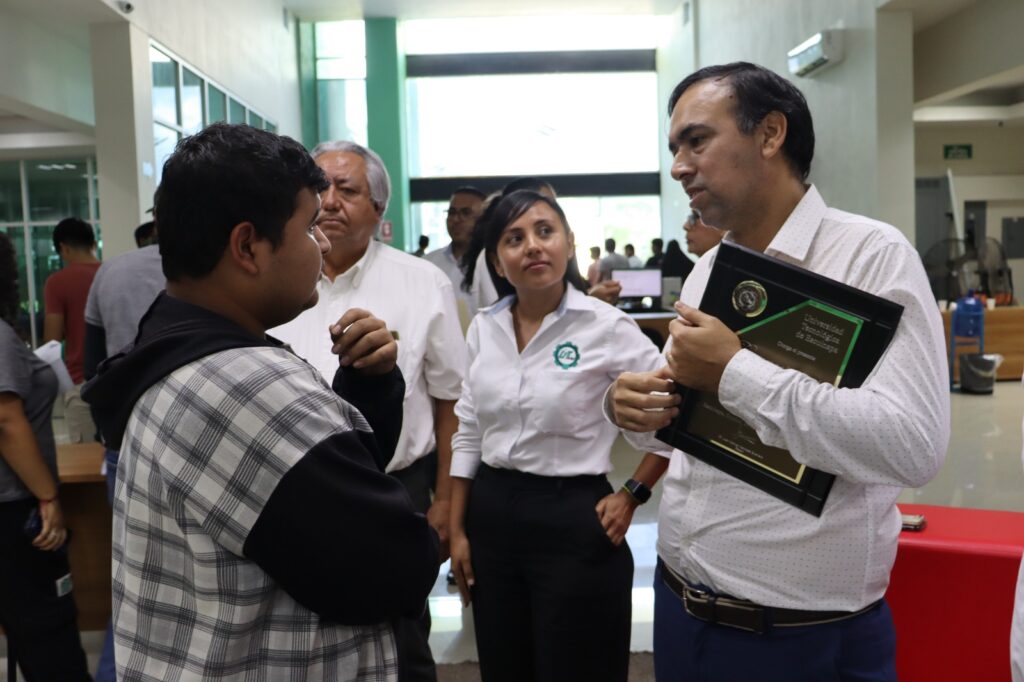 Al finalizar su ponencia, Valerio Lizárraga recibió de manos del rector, Dr. Juan Manuel Mendoza Guerrero, un reconocimiento especial por su trayectoria científico-académica y por ser un joven escuinapense ejemplar. “El Dr. Valerio es un ejemplo de dedicación y esfuerzo de un joven de Escuinapa que estudió en escuelas públicas, se esforzó en el estudio hasta hacerse de un espacio en el mundo de la ciencia y ahora contribuye, a través de su trabajo, a mejorar la calidad de vida de nuestro país”, declaró.
